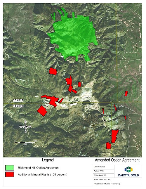 LEAD, SOUTH DAKOTA – Dakota Gold Corp. (NYSE American: DC) (“Dakota Gold” or the “Company”) is pleased to announce that it has amended its binding option agreement with Lac Minerals (USA) LLC (“LAC”) and Homestake Mining Company of California (“HMCC” or “Homestake”), both wholly owned subsidiaries of Barrick Gold Corporation (“Barrick”), on the Richmond Hill Property in the Homestake District, South Dakota (“Richmond Hill”).