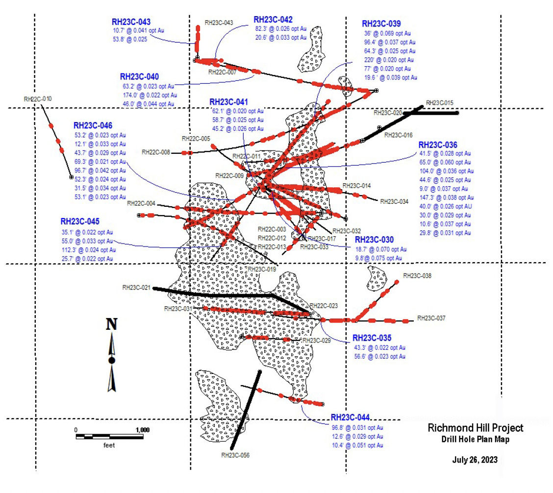 - This phase of drilling at Richmond Hill has produced results consistent with expectations with approximately 80,000 feet of drilling completed to this date.