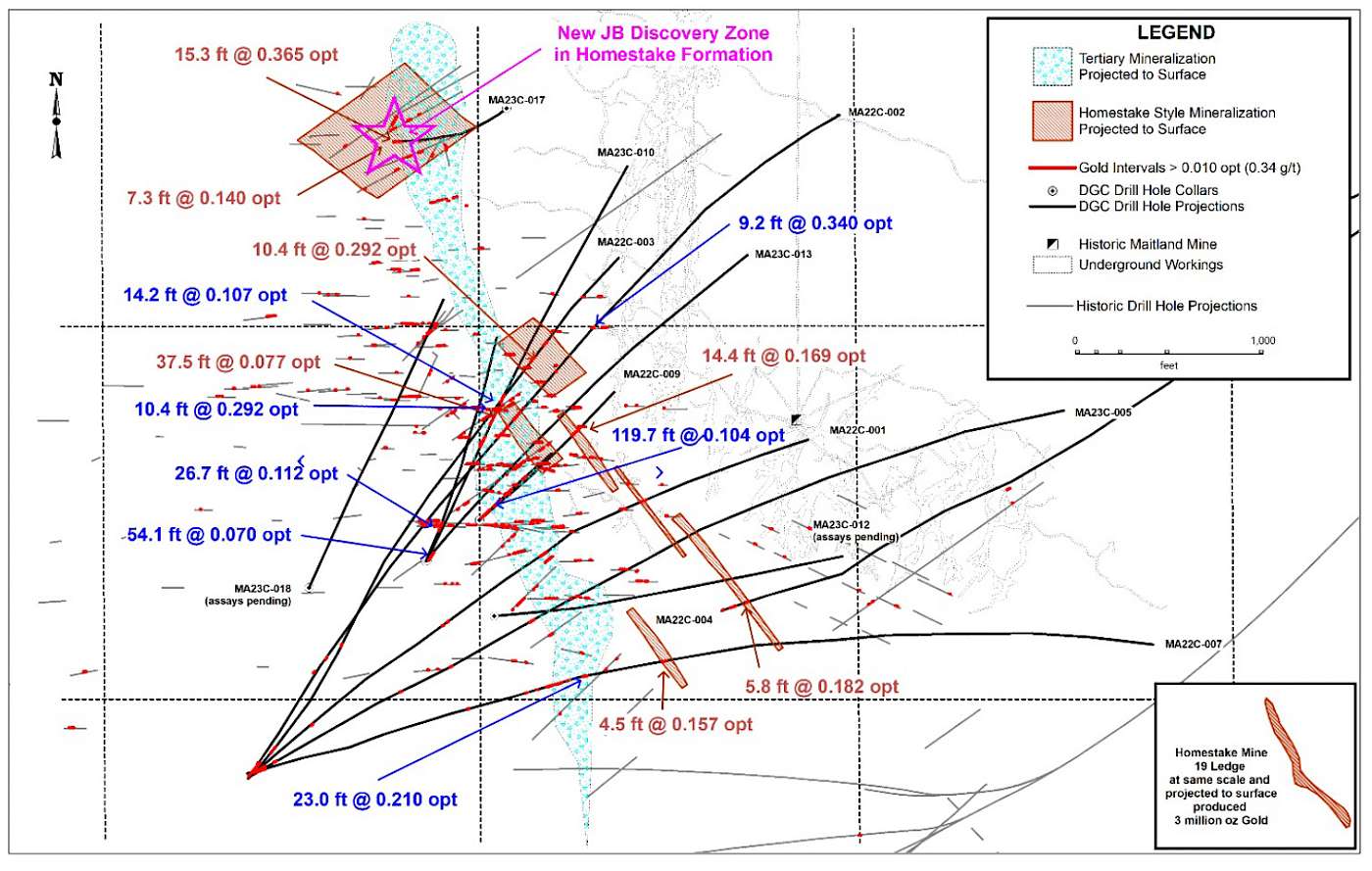 Dakota Gold Corp. Discovers New JB Gold Zone at the Maitland Gold Project with Drill Hole MA23C-017 Intersecting 0.365 oz/ton Au over 15.3 Feet (12.51 grams/tonne over 4.7 meters)